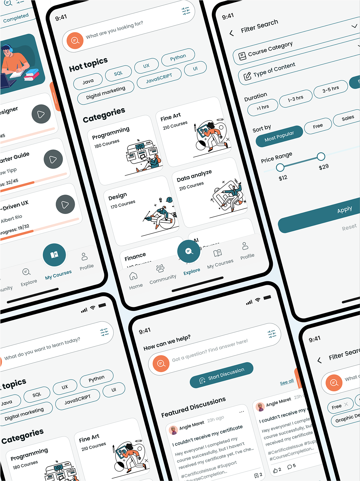 From finding the right course to tracking progress, every screen was built with clarity, purpose, and real-world usability in mind.