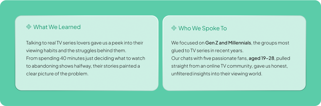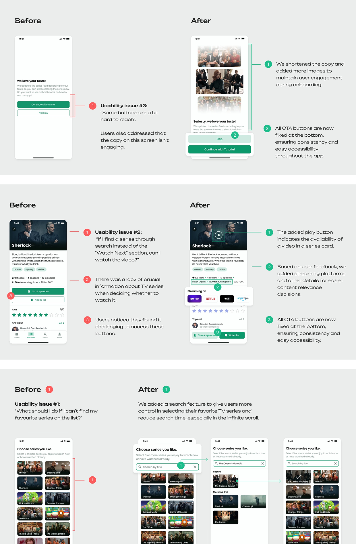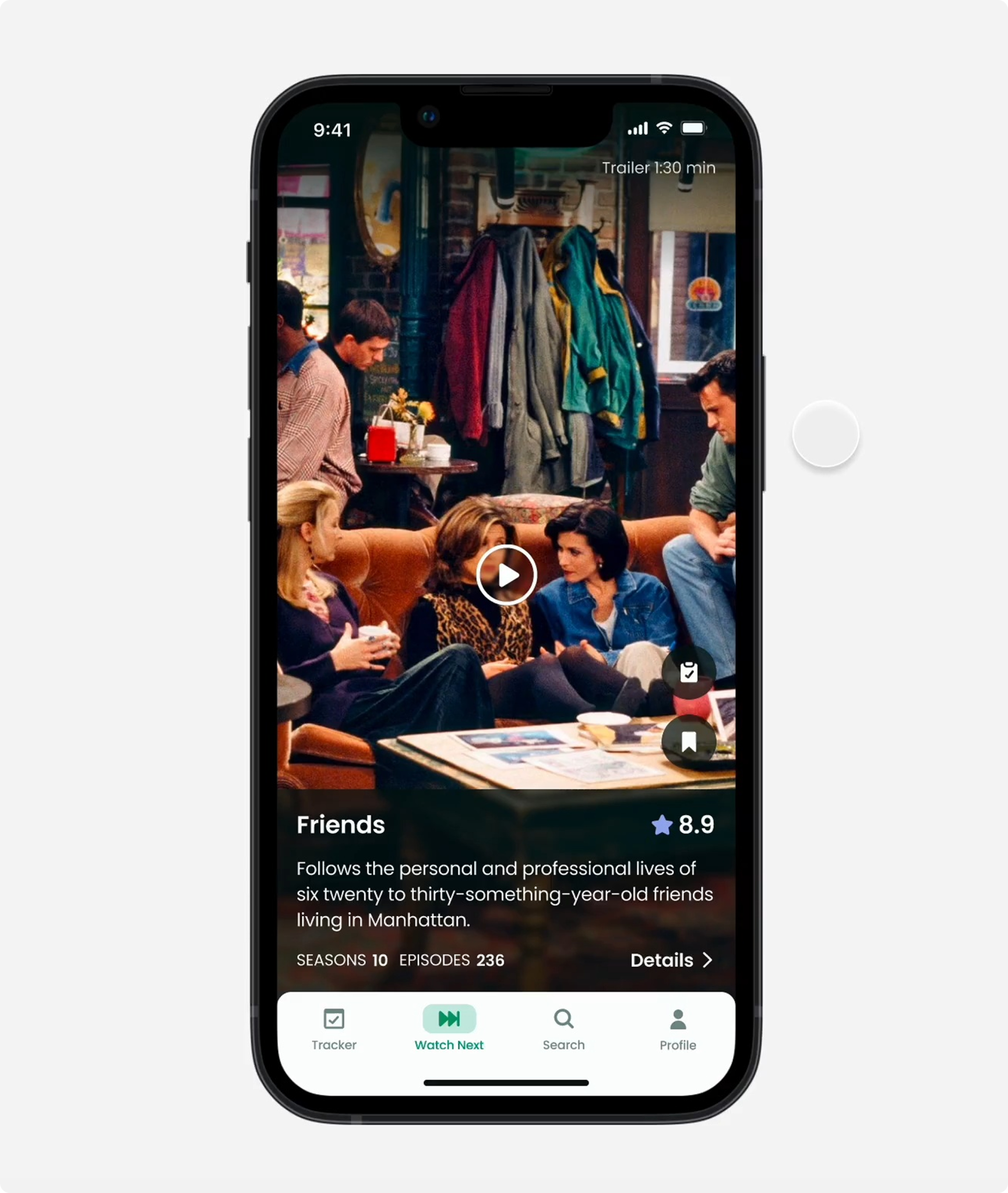 ✔️   We solved the problem of remembering what users watched by allowing users to track series and access a watchlist without switching between platforms.