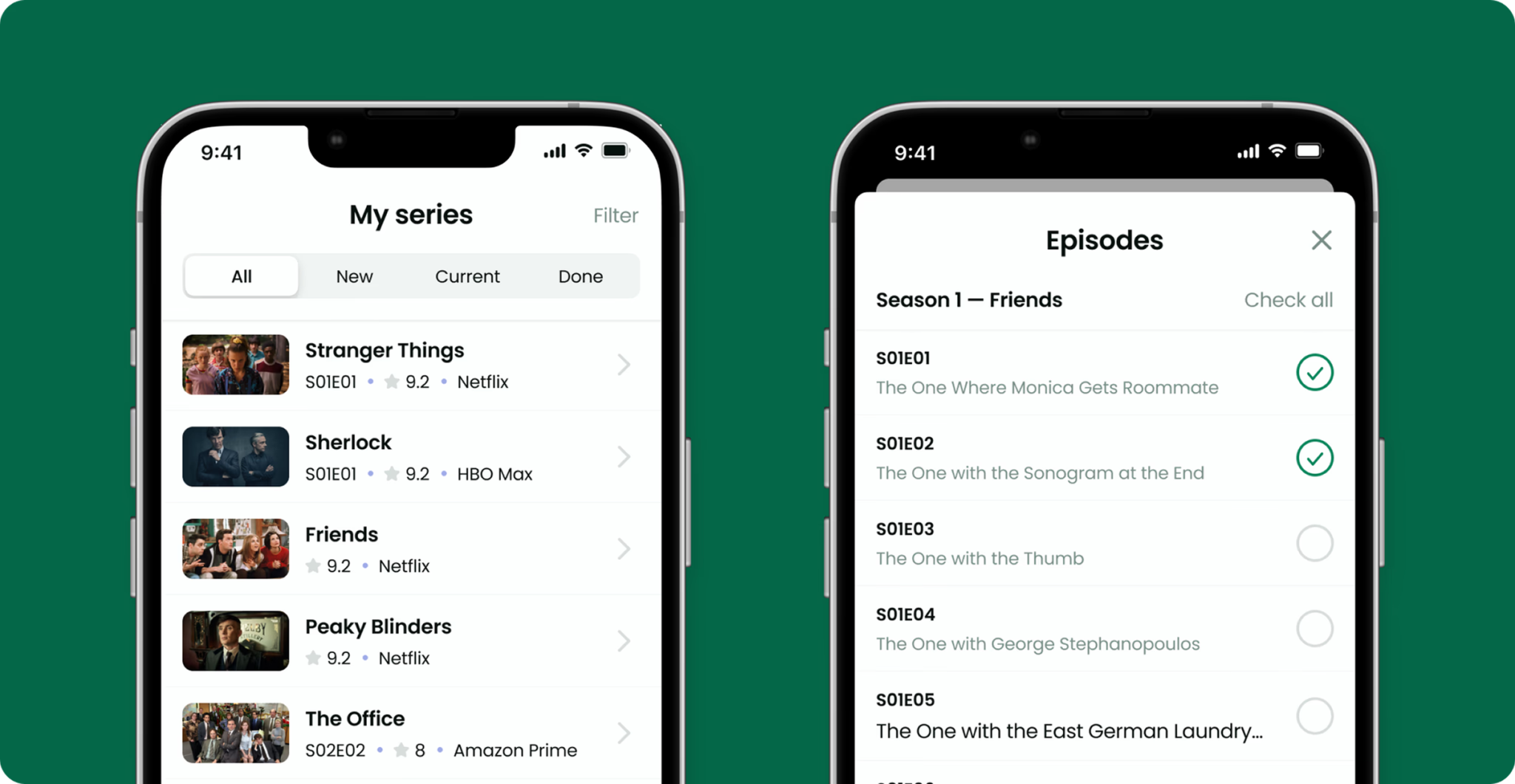 Keep track of TV series in one app, so you are never lost in your all subscriptions